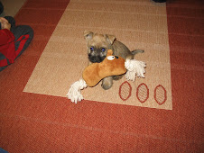 Vaivaakohan muitakin koirakoita samanlainen väsymys kuin minuakin? Eilen oli tokotreeneissä kahden samaan aikaan treenavan ryhmän yhteissaldo neljä ihmistä! No kerrankin oli tilaa treenailla, halli kun tuntuu aika ahtaalta kahden ryhmän treenatessa yhtäaikaa. Uutena asiana harjoiteltiin stoppeja. Treeniä tehtiin kierrättämällä koiraa hyppyesteen siivekkeen ympäri ja koiran tullessa vauhdilla (no joo...vauhdilla ja vauhdilla) kohti, heitettiin pallo alkuun koiran menosuuntaan palkaksi ja muutaman kerran jälkeen koiran tullessa kohti, tehtiin kädellä voimakas pysäytysliike ja heitettiinkin pallo koiran taakse. Tuota voimakasta pysäytysliikettä täytyy harjoitella ihan itekseen, aika lerppu oli aina meikäläisen liike :)